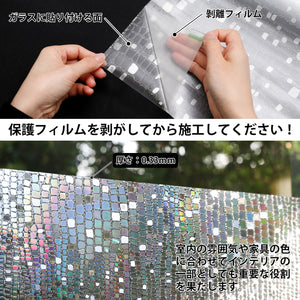 接着剤不要・貼り直し可能:水だけで貼れる静電気吸着タイプ。糊残りがなく、剥がしても再利用可能。初心者でも簡単に貼れて、賃貸住宅にも最適です。※貼る前に保護フィルムを剥がし、平滑なガラス面であることをご確認ください。